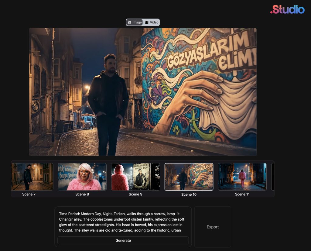 However, Studio allowed us to bypass the technical friction. The platform acted as a co-pilot, generating the full script and proposing scene compositions based on the Cihangir setting we envisioned.